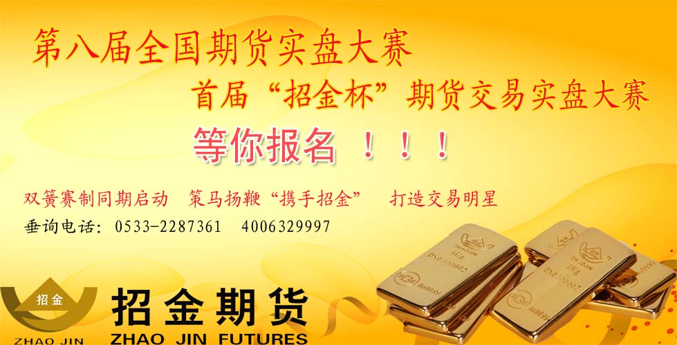 期貨日報主辦的第八屆全國期貨實盤交易大賽3月28日開賽,招金期貨作為大賽指定的期貨通道平臺,開戶即可免費參加比賽,現(xiàn)有招金客戶可直接參賽。各種資金規(guī)模,各種交易方法給您充分展示的舞臺。首屆“招金杯”期貨交易實盤大賽也同步開賽。兩賽聯(lián)袂,一次報名即可同時參加,比賽實行雙重獎金制度,全國實盤大賽總獎金130萬,招金期貨總獎金150克黃金!一次參賽,雙份獎金,低門檻投入,高額回報。招金期貨將竭誠為參賽者提供報名、咨詢、指導(dǎo)等各項服務(wù),幫您實現(xiàn)冠軍夢,歡迎各位投資者積極參與!