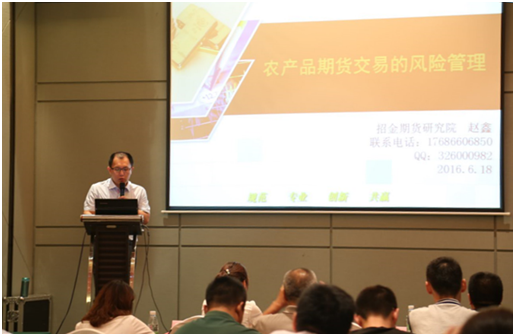 招金期貨研究院農(nóng)產(chǎn)品團(tuán)隊(duì)負(fù)責(zé)人趙鑫做演講