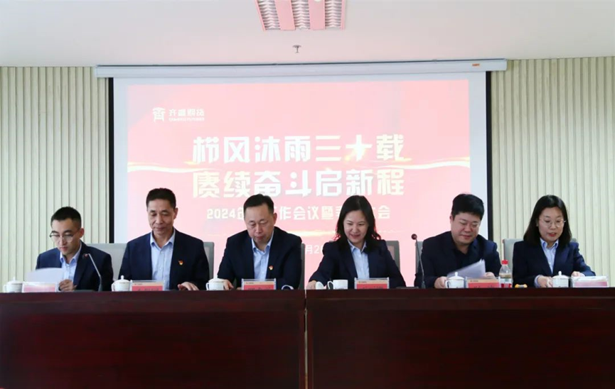 1月20日,齊盛期貨召開2024年度工作會議,公司黨支部書記、董事長邢成亮,班子成員、部門副經(jīng)理以上人員共計近60人參會會議。