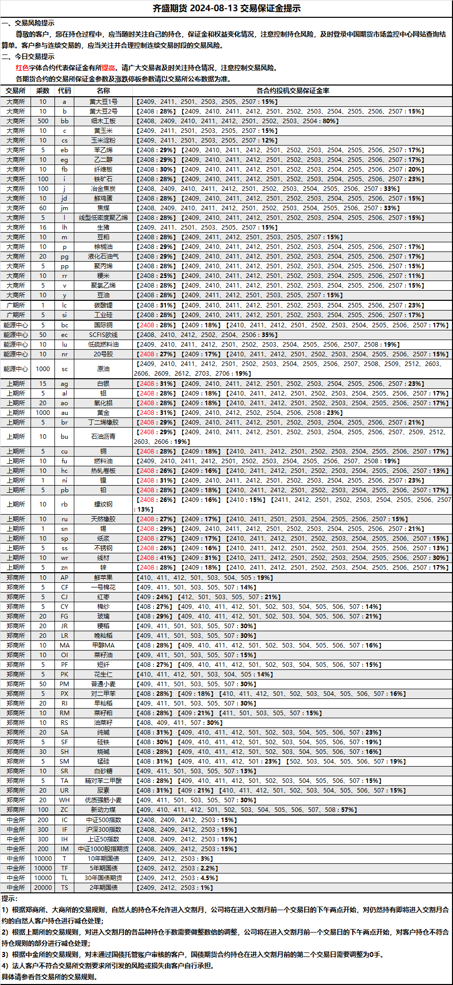 保證金提示