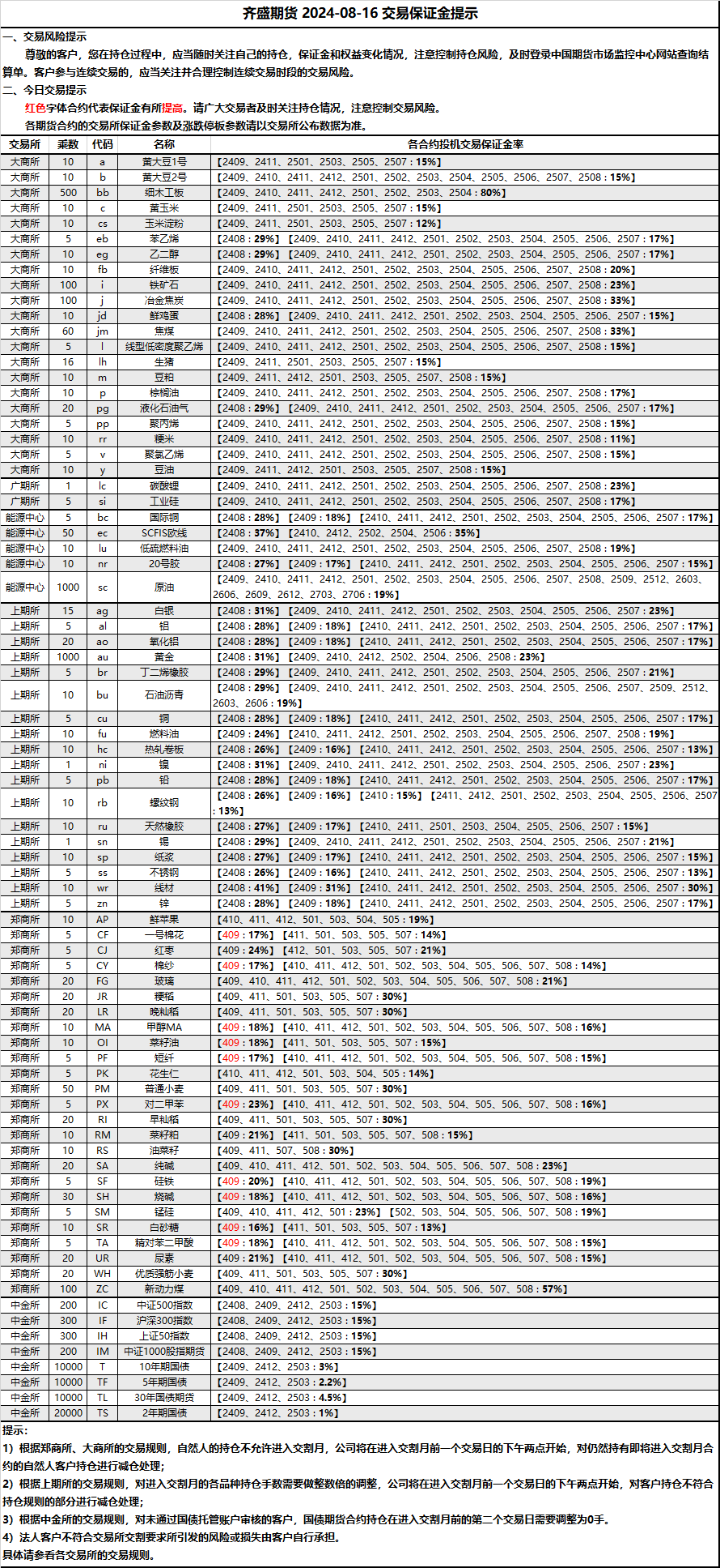 保證金提示