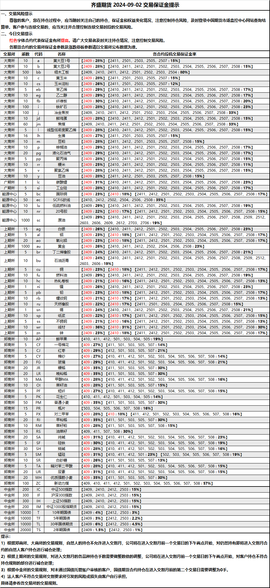 保證金提示