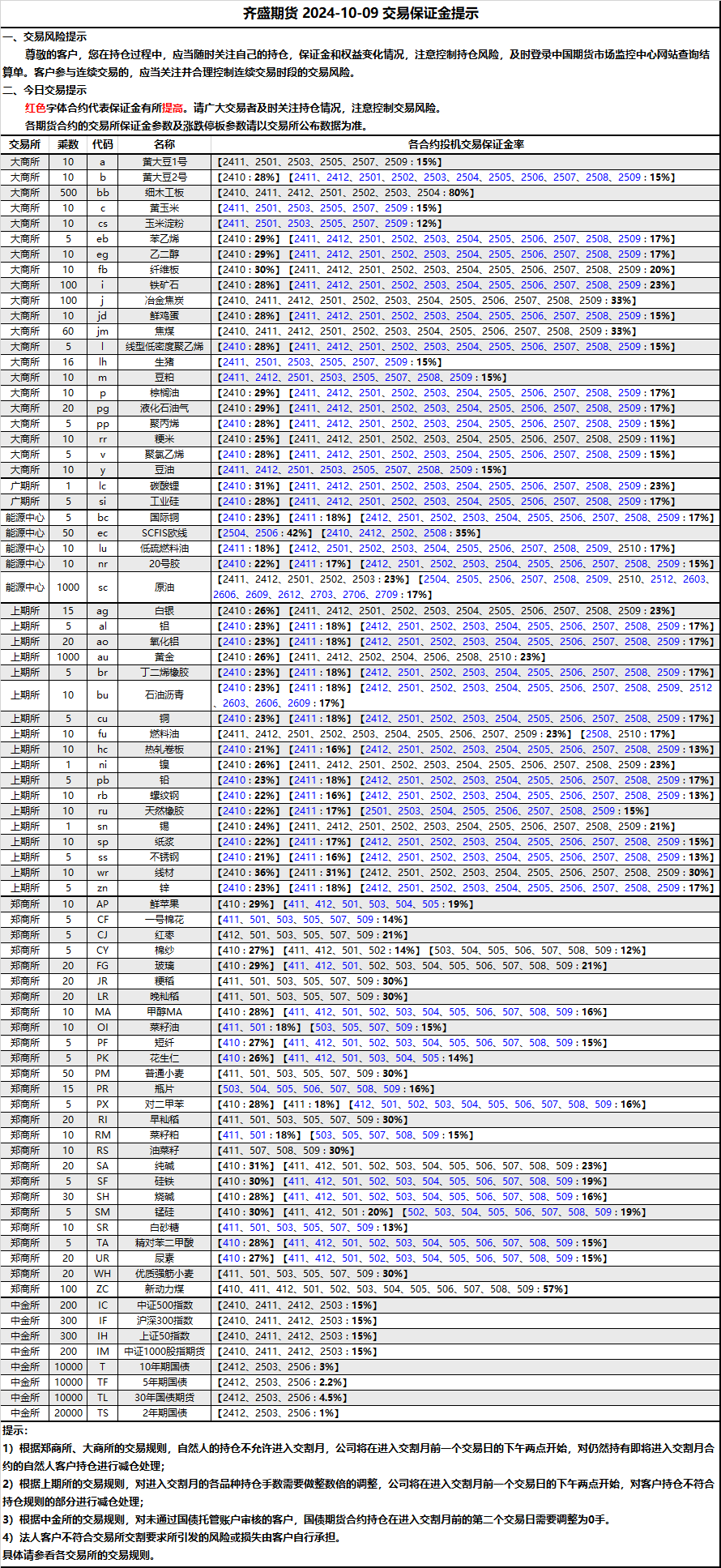 保證金提示