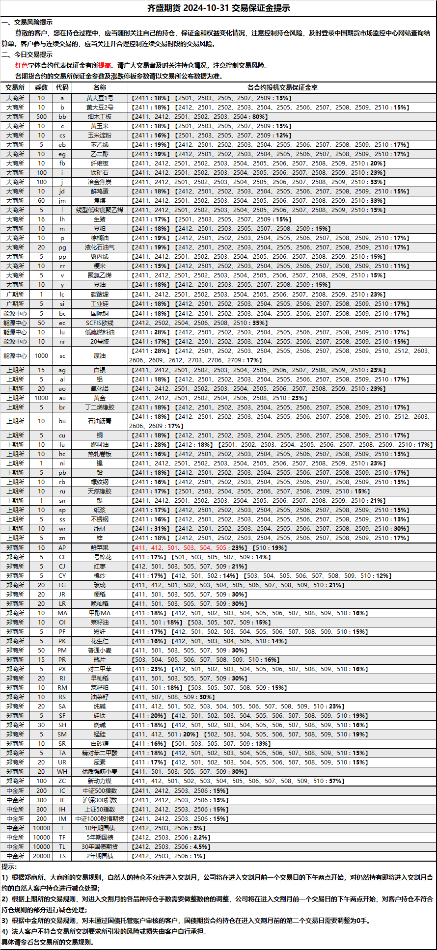 保證金提示