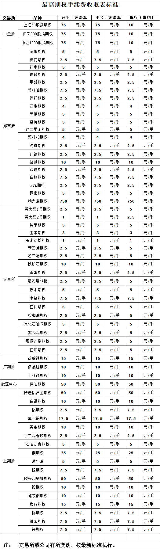 手續(xù)費公示