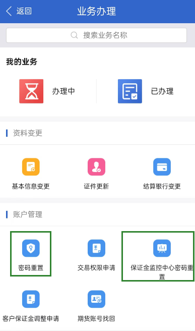 2. “保證金監(jiān)控中心密碼重置”欄目下,可重置保證金監(jiān)控中心密碼。
