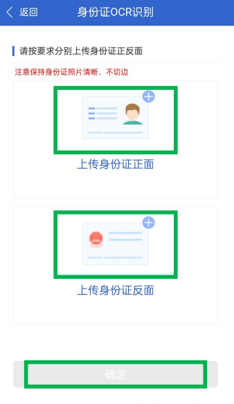 2..身份證OCR:上傳身份證正、反面,點擊【確定】