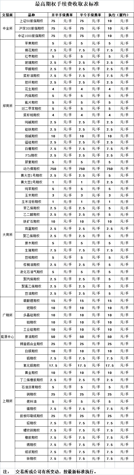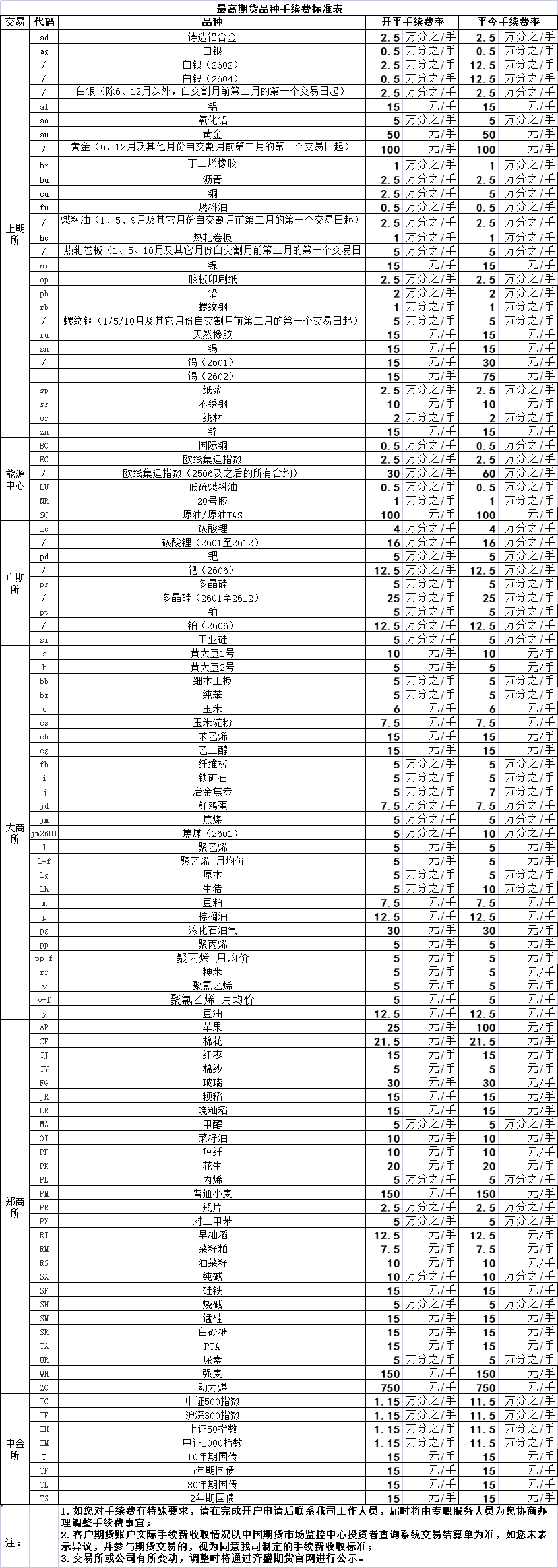 手續(xù)費(fèi)公示
