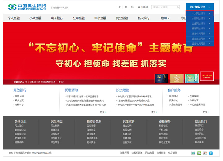 登錄個(gè)人網(wǎng)銀首頁(yè)。