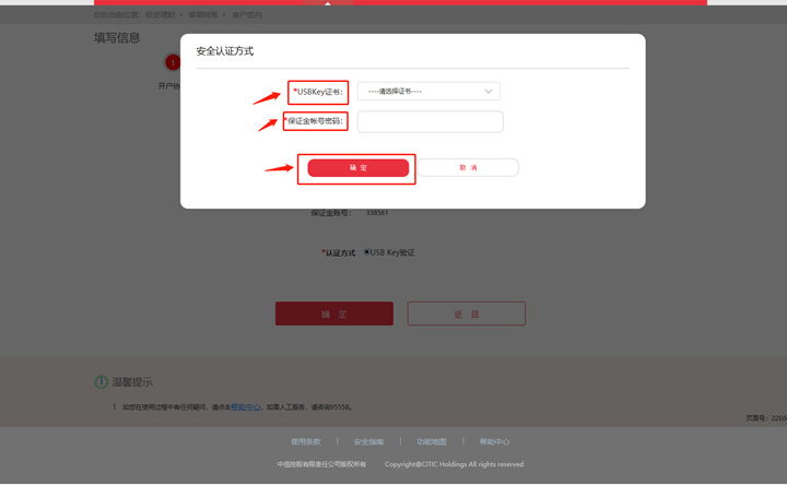 選擇USBKEY證書-輸入保證金賬號密碼-確定。